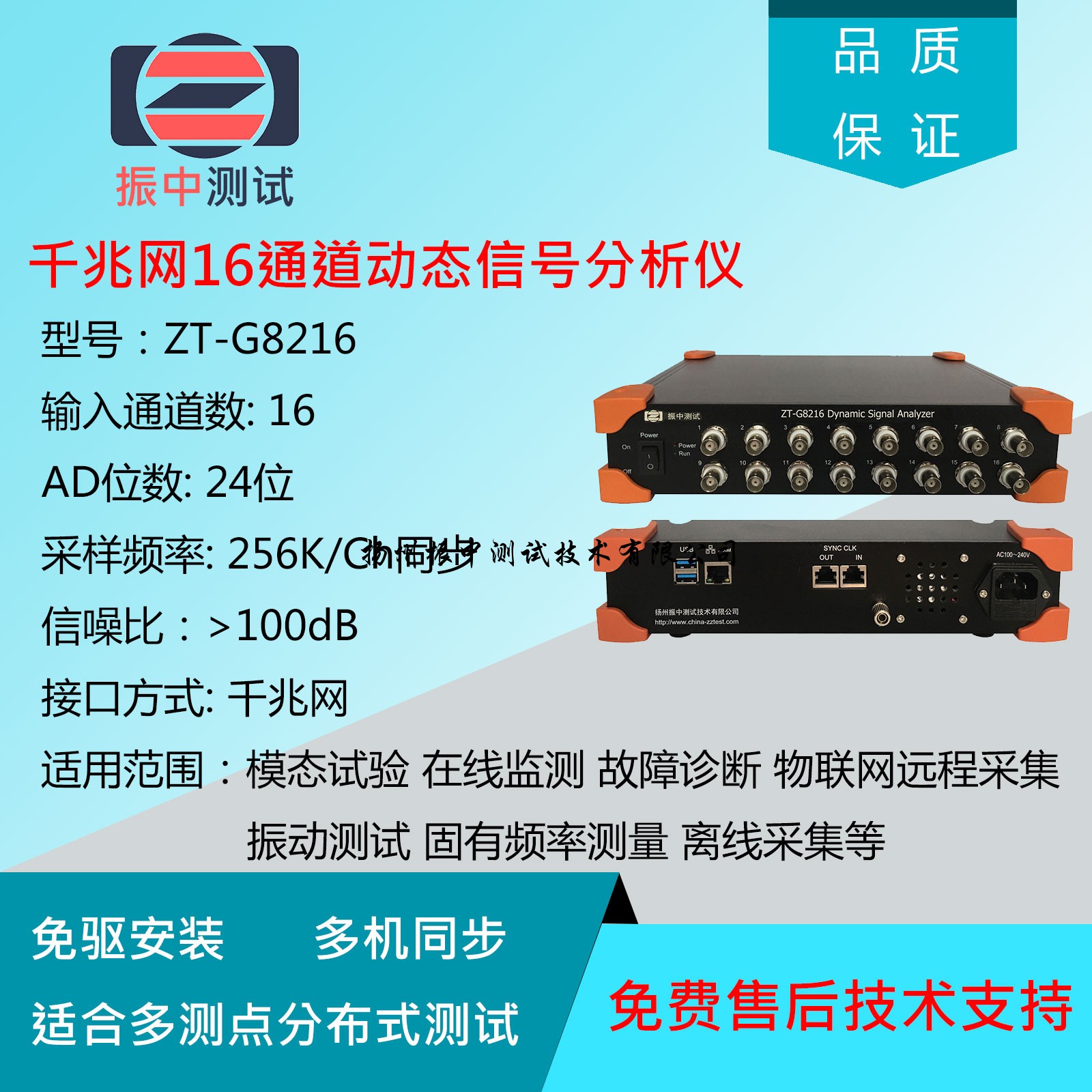 ZT-G8216(千兆網 24位 256K 16通道動態信號分析儀)